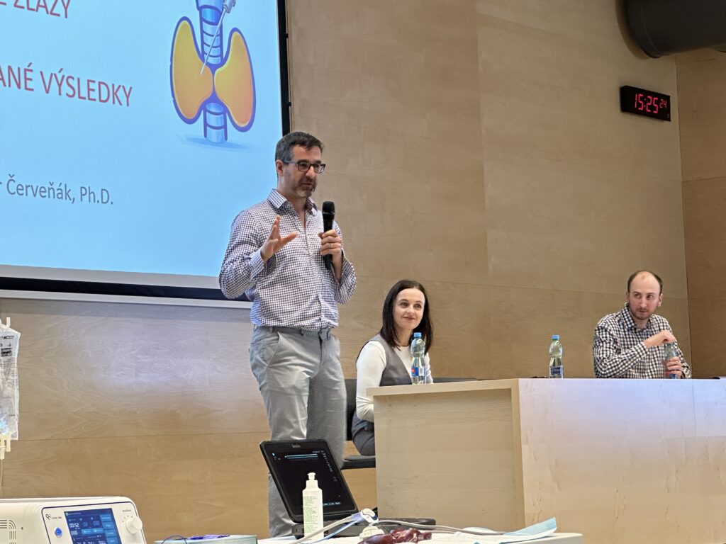 Workshop zahájil primář MUDr. Igor Suškevič, který přivítal účastníky a uvedl celý odborný blok. Následně se slova ujal MUDr. Filip Šustr, jehož přednáška se zaměřila na management uzlů štítné žlázy v kontextu nástupu miniinvazivních ablačních technik.